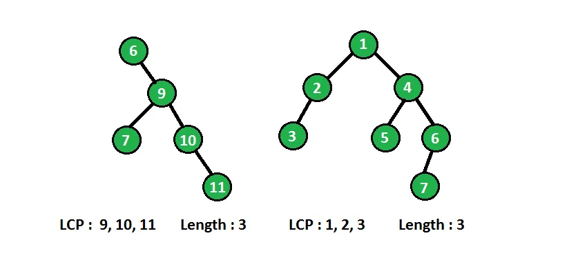 In below diagram binary tree with longest consecutive path(LCP) are shown :